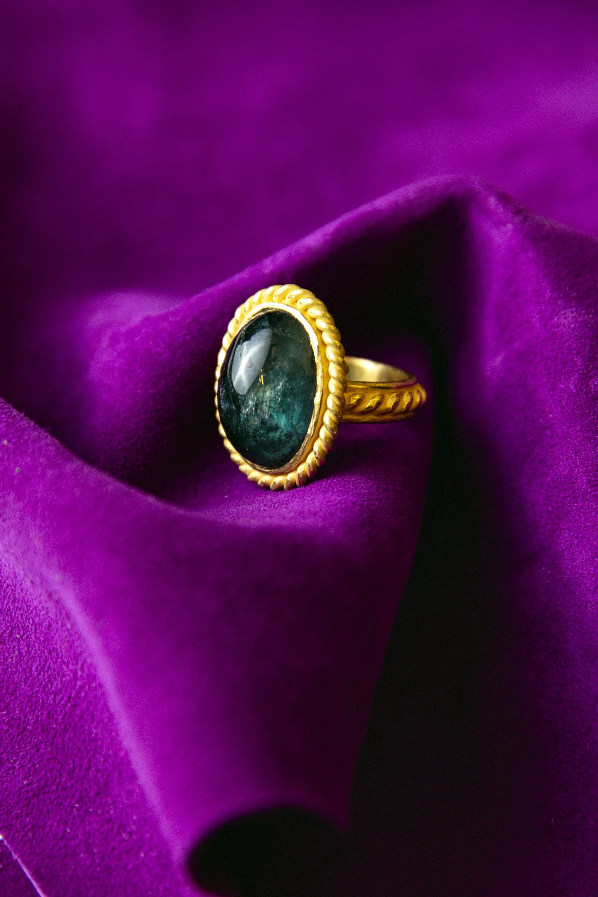 Anello OvaleAnello in oro giallo 18k con tormalina verde cabochon. Fusione a cera persa. Maggiori informazioni